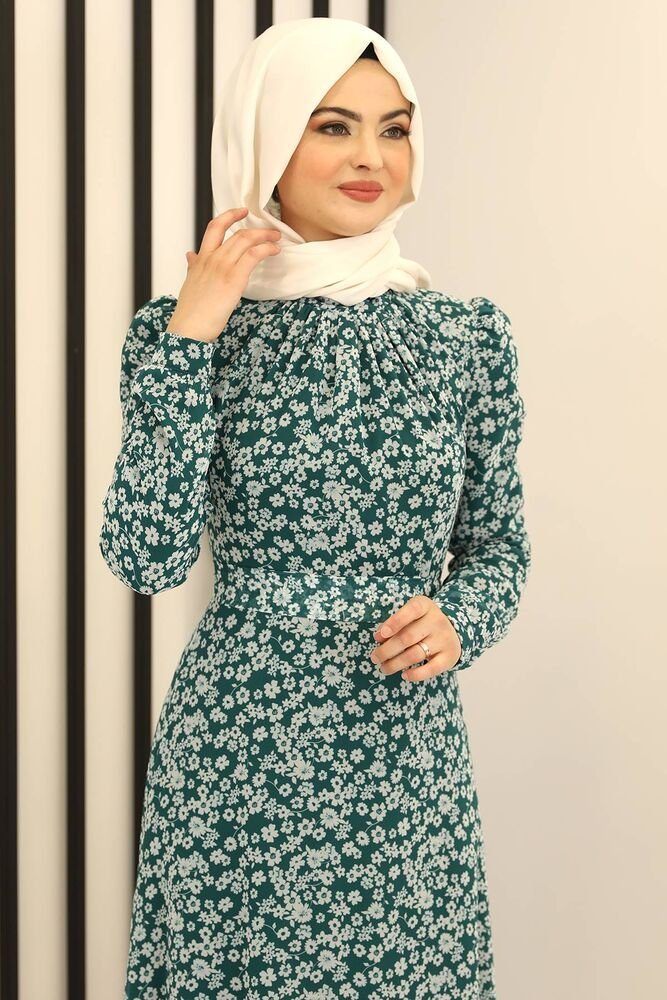 Entdecken Sie die perfekte Kombination aus Stil und Eleganz mit unserem langärmligen Chiffon Maxikleid im geblümten Design. Dieses Kleid ist ideal für besondere Anlässe und den täglichen Gebrauch geeignet und bietet dank des leichten Chiffonstoffs ein angenehmes Tragegefühl, das sowohl Komfort als auch Stil vereint. Das Kleid zeichnet sich durch seinen geschlossenen, aber rund geschnittenen Halsbereich aus, der eine vollständige Bedecktheit gewährleistet und somit für Modest Fashion perfekt geeignet ist. Mit einer Gesamtlänge von 150 cm bietet das Kleid eine anmutige Silhouette und ist in den Größen 38-48 erhältlich, was den EU-Größen 36-46 entspricht. Bitte beachten Sie, dass die Kleider eine Nummer kleiner ausfallen – bestellen Sie daher unbedingt anhand der EU-Größen in Klammern. Der leichte, fließende Chiffonstoff verleiht dem Kleid eine luftige Bewegung und ist ideal für den ganzjährigen Einsatz. Das geblümte Muster sorgt für eine frische, feminine Optik, die in Kombination mit dem langen Schnitt für einen eleganten Look sorgt. Die langen Ärmel und der geschlossene Ausschnitt machen dieses Kleid zur idealen Wahl für Hijab-Mode und religiöse Feierlichkeiten. Der gerade Saumabschluss und die dezente Taille unterstreichen die klassische Linie des Kleides, während der knitterfreie Stoff für Pflegeleichtigkeit sorgt. Die Pflegehinweise sind einfach – nur chemische Reinigung, um die Qualität und Schönheit des Stoffes zu erhalten. Kombinieren Sie das Kleid mit einem passenden Kopftuch und eleganten Accessoires für den perfekten Auftritt.