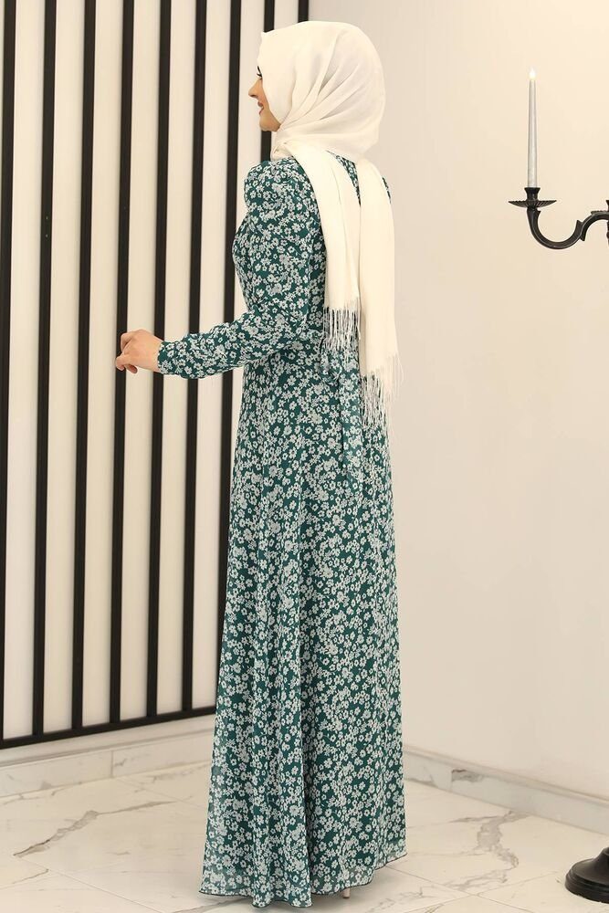 Chiffonkleid Langärmliges Maxikleid für Damen – Modest Fashion Hijab Mode 48 grün