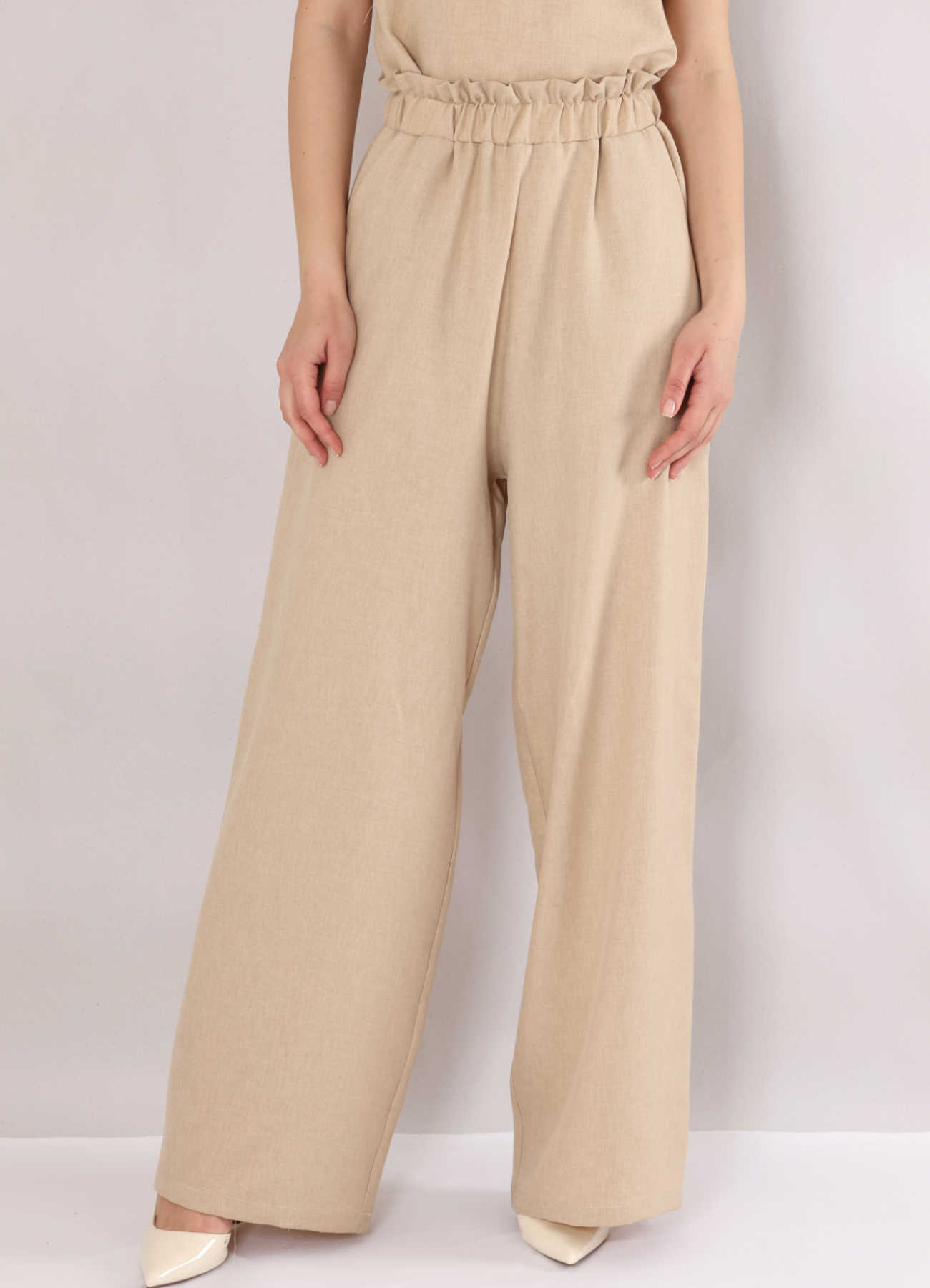 Haremshose Damen Palazzo Hose High Waist Leinenoptik - Marlene Sommerhose