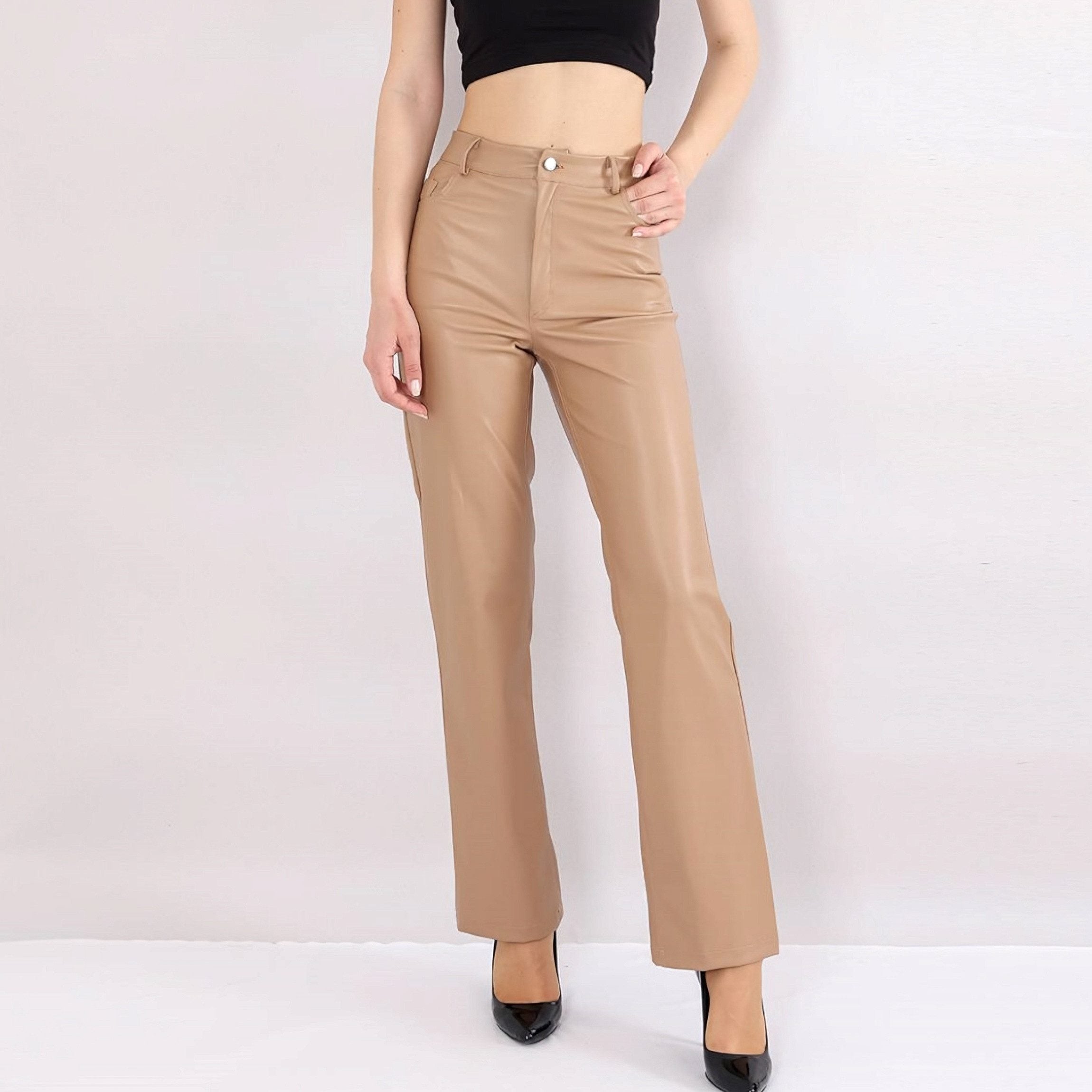 Setzen Sie ein modisches Statement mit unserer Damen-Hose in authentischer Lederoptik. Diese Kunstlederhose ist das perfekte Balance zwischen trendigem Design und alltäglichem Komfort. Mit ihrer mittleren Taille und dem klassischen Knopfverschluss samt verstecktem Reißverschluss bietet sie eine schmeichelnde Passform, die sich Ihrem Körper anpasst. Die Hose ist ausgestattet mit praktischen Taschen, die sowohl funktional als auch stilvoll sind. Mit einer Innenbeinlänge von 78 cm und einer Gesamtlänge von 104 cm passt sie sich verschiedenen Körpergrößen an und sorgt für eine elegante Silhouette. Erhältlich in den Farben Schwarz für einen klassischen Look, Braun für einen warmen Touch oder Beige für eine helle Alternative – diese Hose ist ein vielseitiges Kleidungsstück, das Sie sowohl tagsüber als auch abends tragen können. Wählen Sie aus unserem breiten Größenspektrum von S(36) bis 3XL(46) Ihre perfekte Passform. Ob im Büro oder bei einem Abendessen – diese Kunstlederhose wird schnell zum Highlight Ihrer Garderobe!