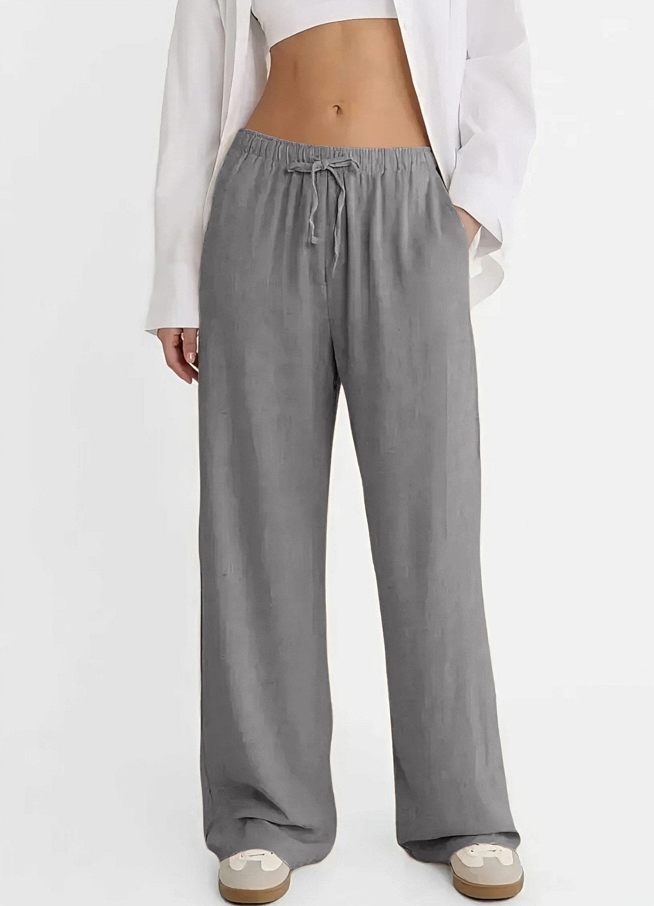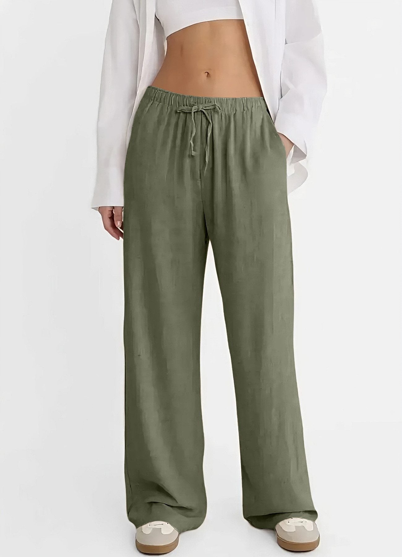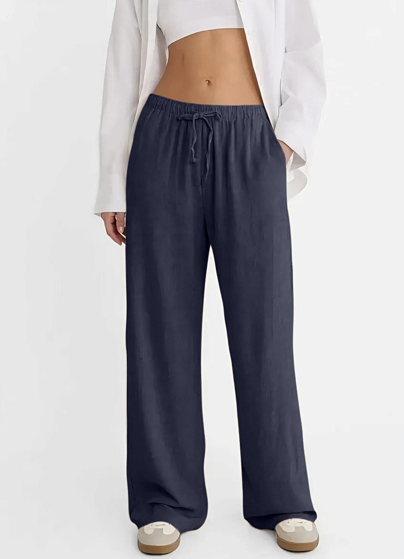 Erleben Sie stilvolle Eleganz und maximalen Tragekomfort mit unserer Damen Leinenhose, die perfekt auf Ihren Alltagsbedarf und besondere Anlässe zugeschnitten ist. Diese vielseitige Hose besteht aus einer hochwertigen Leinenmischung, die atmungsaktiv, leicht und dennoch formstabil ist – ideal für alle Jahreszeiten. Der weiche Stoff und der fließende Fall machen diese Hose zu einem Must-Have für modebewusste Frauen, die auf Stil und Komfort gleichermaßen Wert legen. Mit einer Gesamtlänge von 106 cm und einer Innenbeinlänge von 80 cm umspielt die Hose Ihre Figur vorteilhaft und sorgt für eine schmeichelhafte Silhouette. Die weite Passform und der gerade Schnitt bieten Ihnen nicht nur Bewegungsfreiheit, sondern auch einen lässigen, aber dennoch eleganten Look, der sich sowohl für den Alltag als auch für festliche Anlässe eignet. Der elastische Bund mit einem praktischen Kordelzug sorgt für eine individuelle Passform, sodass die Hose angenehm sitzt, ohne einzuschneiden. Erhältlich in den Größen XS bis XXL (34-44) und in den zeitlosen Farben Blau, Grau, Khaki und Navy-Blau, ist diese Hose ein echtes Allround-Talent. Ob im Büro, bei einem Treffen mit Freunden oder auf Reisen – sie lässt sich vielseitig kombinieren. Tragen Sie sie elegant mit einer Bluse oder lässig mit einem T-Shirt und Sneakers. Zwei seitliche Eingrifftaschen bieten ausreichend Platz für kleine Utensilien, während das minimalistische Design einen cleanen, modernen Look garantiert. Diese Hose überzeugt nicht nur durch ihre modische Vielseitigkeit, sondern auch durch ihre pflegeleichten Eigenschaften. Sie behält ihre Form und Farbe auch nach vielen Wäschen und bleibt Ihnen somit lange erhalten. Diese Leinenhose ist die ideale Wahl für Frauen, die Komfort und Stil vereinen möchten. Bestellen Sie jetzt und erleben Sie eine Hose, die das ganze Jahr über getragen werden kann – von warmen Frühlingstagen bis zu kühleren Herbstabenden.